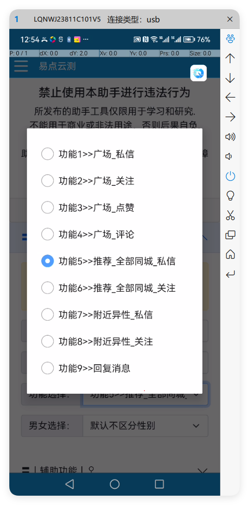 软件请勿用于非法用途,请勿用于诈骗、博彩、色情等黑、灰产产业,一经发现取消使用助手资格,不会进行任何的售后指导,如产生任何法律纠纷与本站无关。