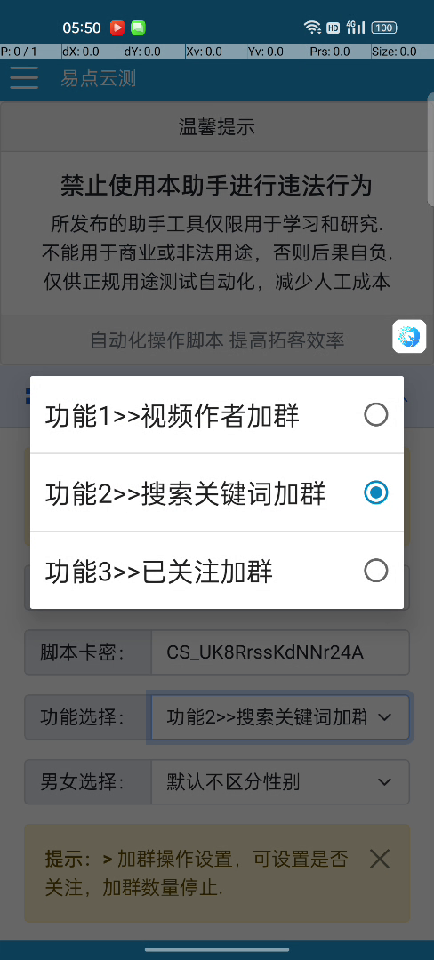 软件请勿用于非法用途,请勿用于诈骗、博彩、色情等黑、灰产产业,一经发现取消使用助手资格,不会进行任何的售后指导,如产生任何法律纠纷与本站无关。