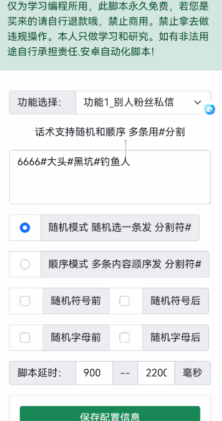 本站助手是为减少繁琐的手工操作开发的自动化测试工具,纯粹的代替人工完成繁杂的鼠标和键盘点击操作流程测试,严格遵守计算机相关法律法规,一切由用户使用产生的后果及责任由使用者自行承担,我站及助手开发人员不承担任何相关及其连带责任,特此申明!如果我们无意中侵犯了您的知识产权,敬请告之,我们核实后,将在第一时间删除,谢谢! 请勿使用软件发送违规内容!禁止使用助手发送非法内容和引流后变相欺骗等黑操作 !